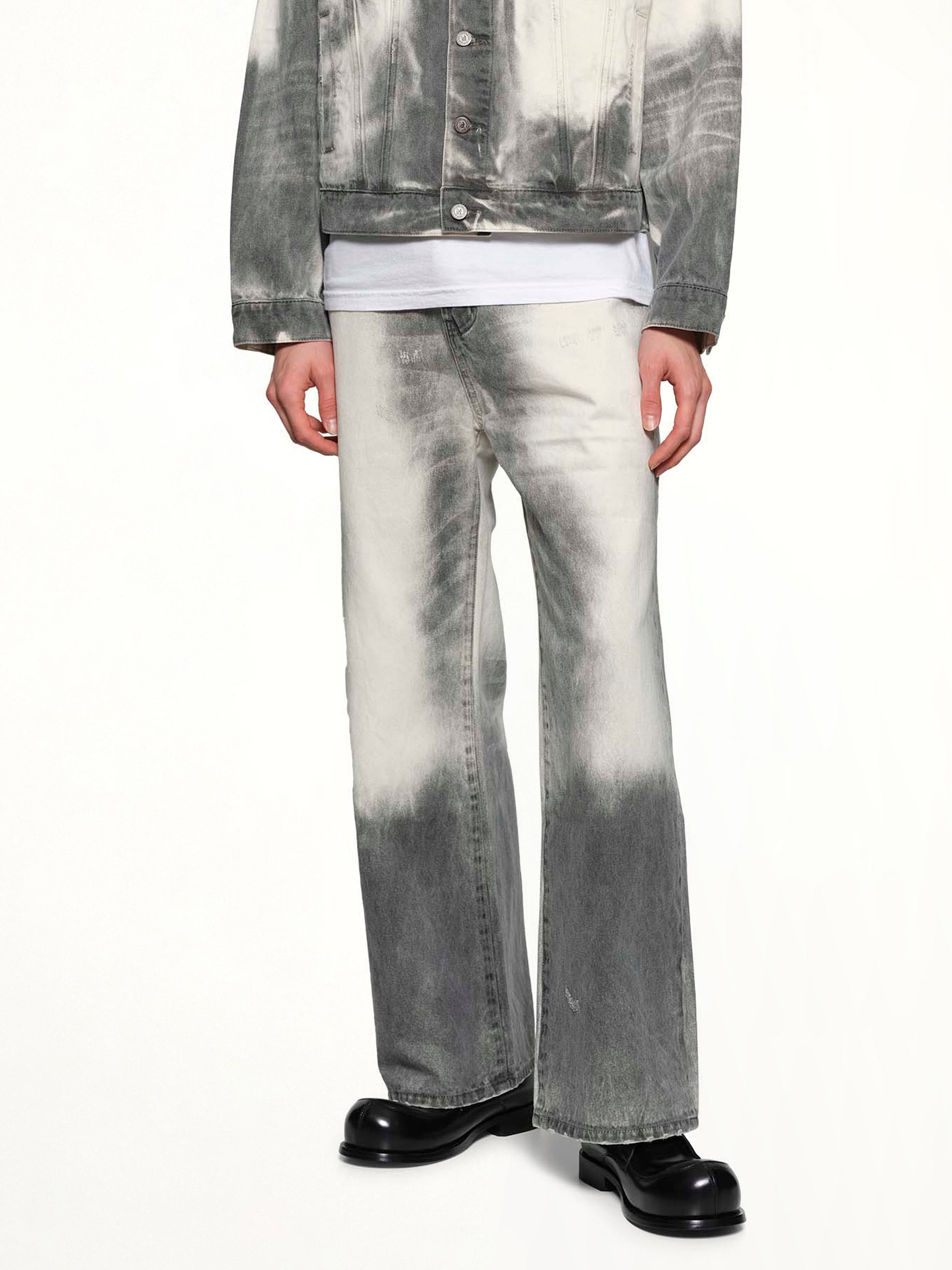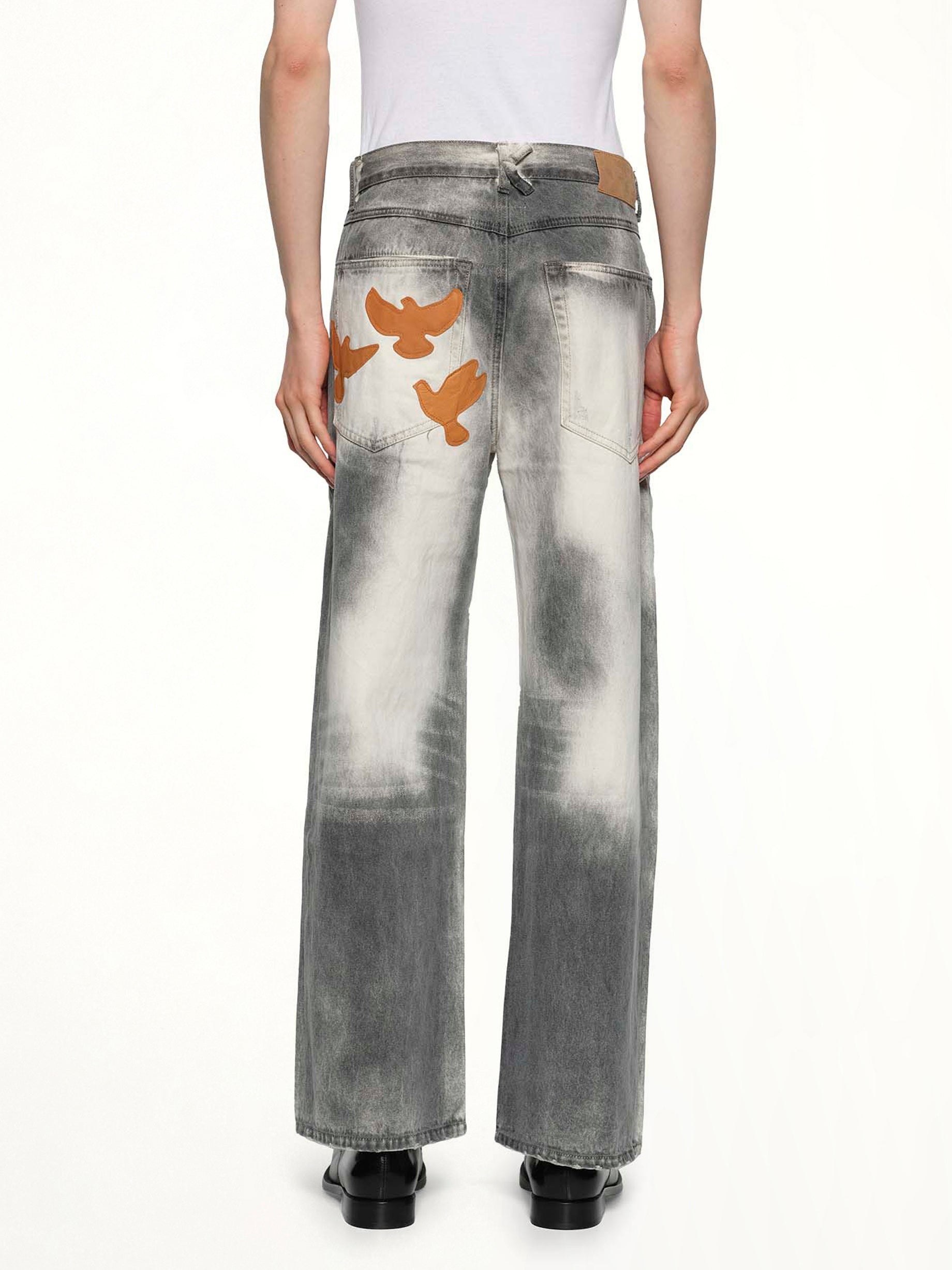Kid Super's Washed Doves Denim Jeans in White is a stylish and contemporary addition to any wardrobe. These jeans offer a unique washed design that stands out with its subtle dove pattern.