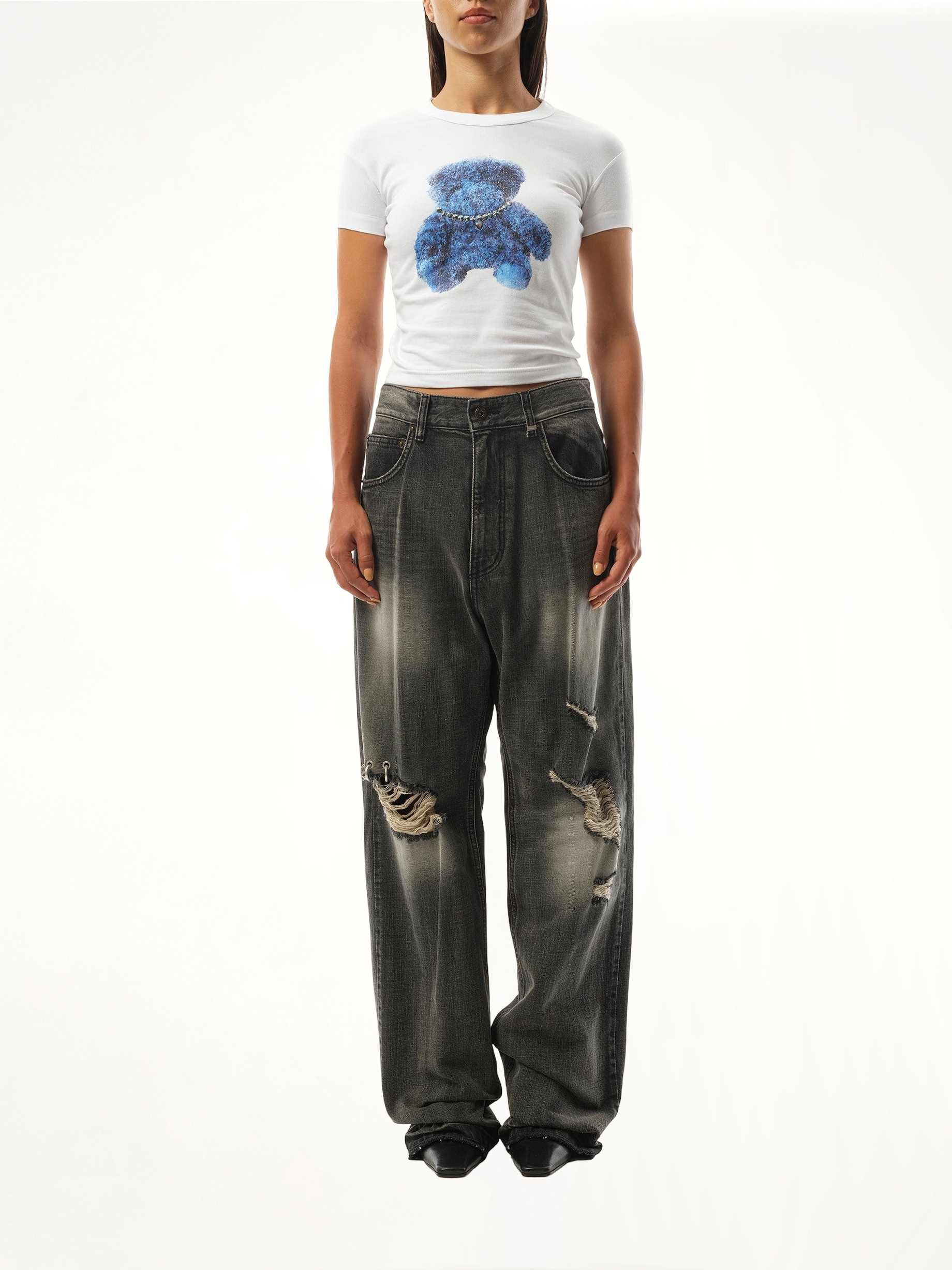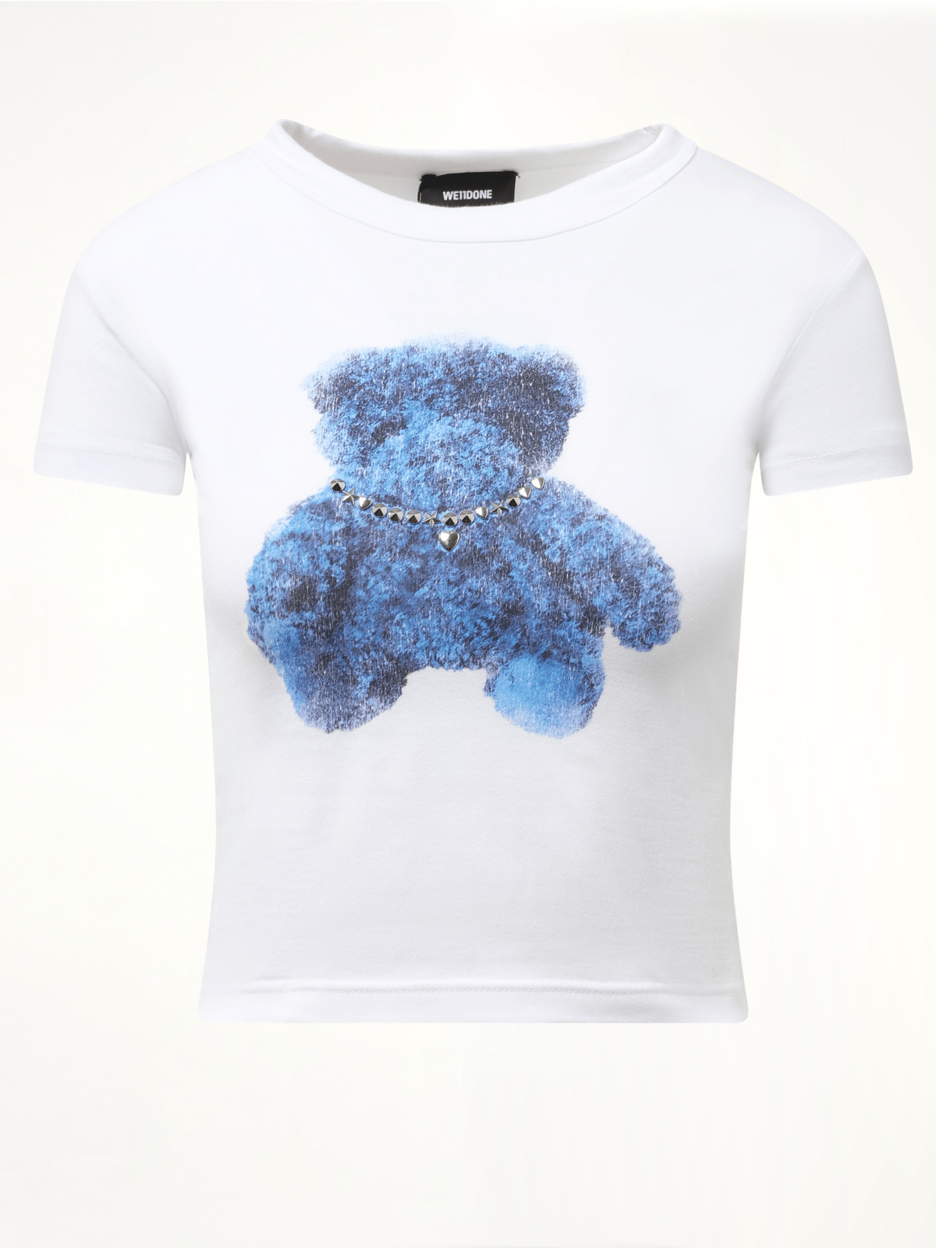Show off your fierce side with our Women's Studded Bear Cropped T-Shirt in White. This stylish tee features a bold studded bear design and a comfortable cropped fit. Perfect for adding an edgy touch to any outfit. Stay on trend with this must-have piece.