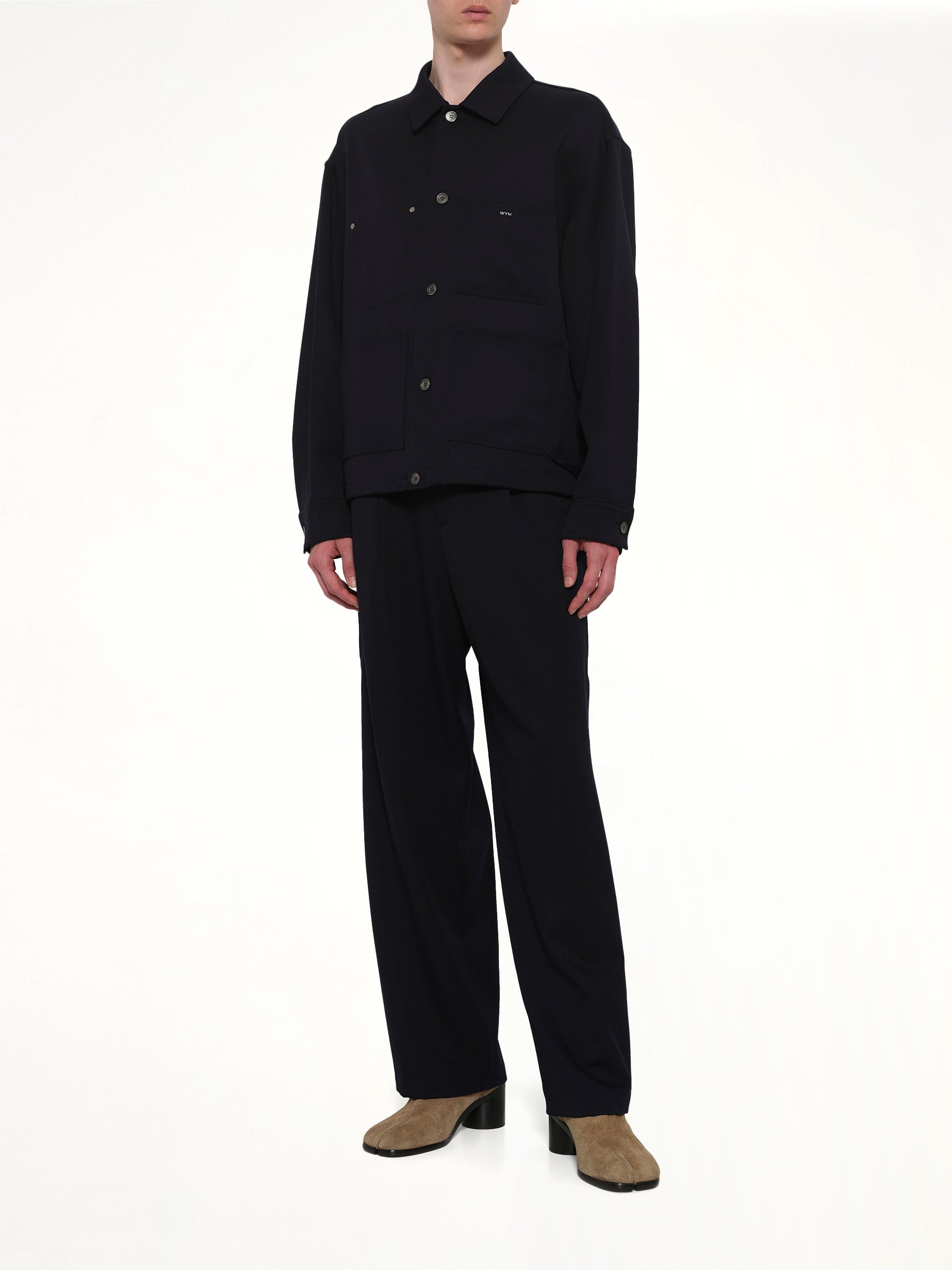 Wool Button Shirt in Navy