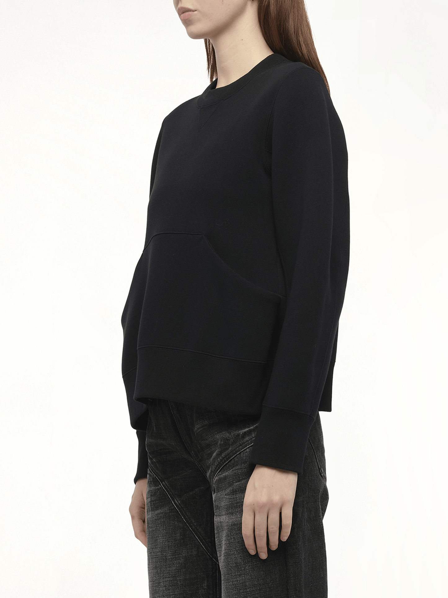 SACAI's Sponge Sweat Pullover in Black is a versatile and stylish addition to any wardrobe. This pullover combines comfort with a modern aesthetic, making it perfect for both casual and semi-formal occasions.